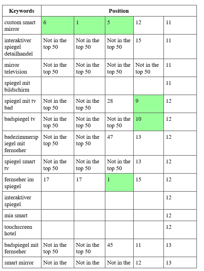 SEO продвижение сайта производителя умных зеркал в Германии