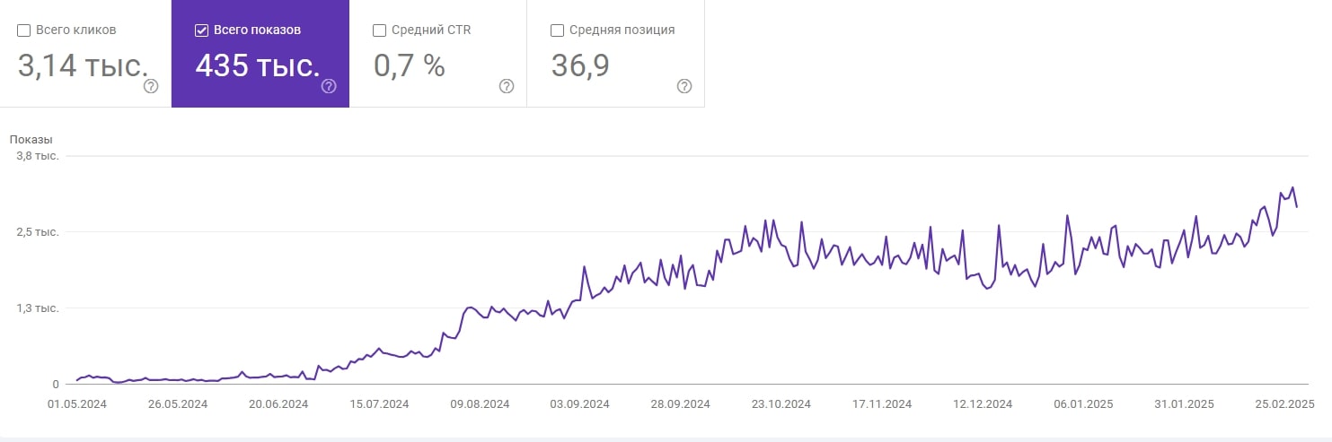 За время работы органический трафик вырос с 35 до 1000 визитов в месяц.