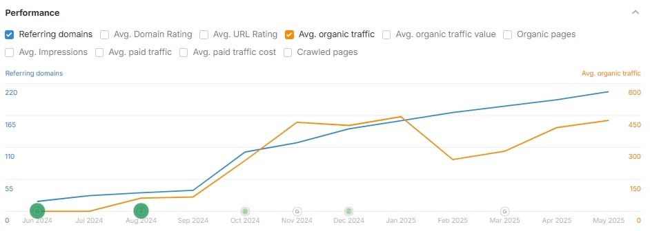 Динамика органического трафика и ссылающихся доменов: