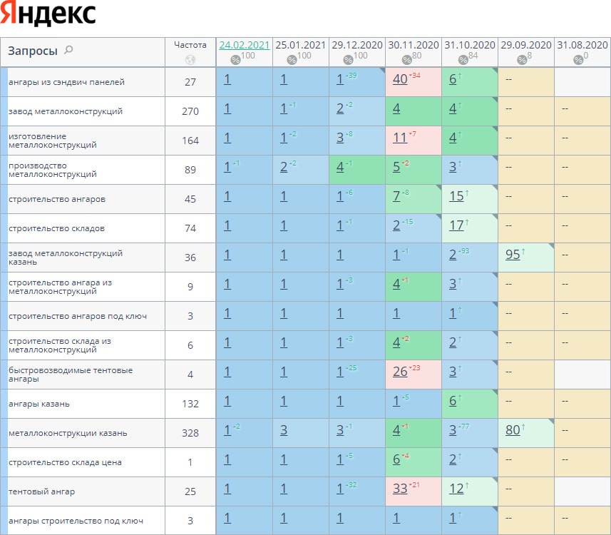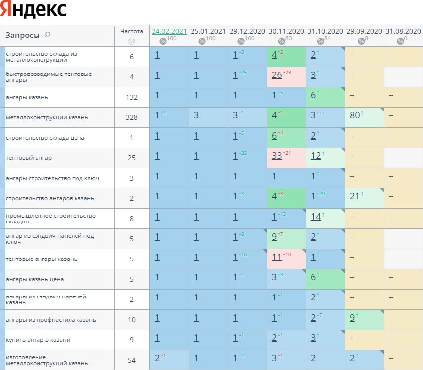 За время работы нам удалось поднять позиции с 0% до 100% в ТОП-10 с 0% до 84% в ТОП-3. Трафик увеличился в 12 раз, а количество заявок в 4.5 раз. И так будет с каждым проектом!