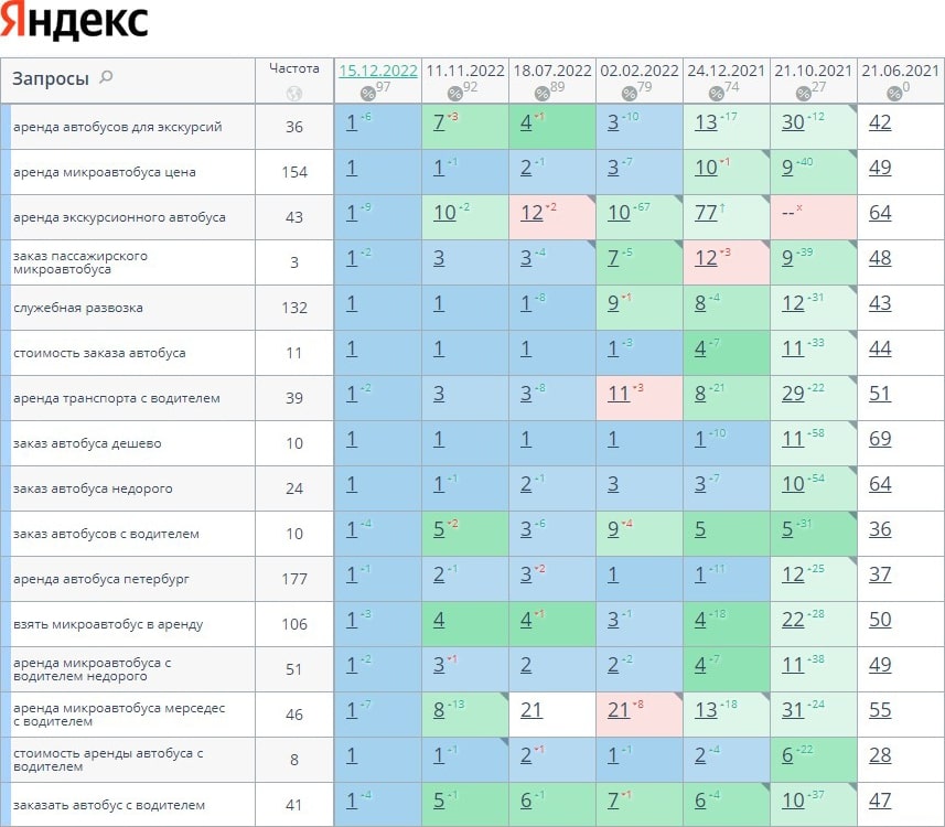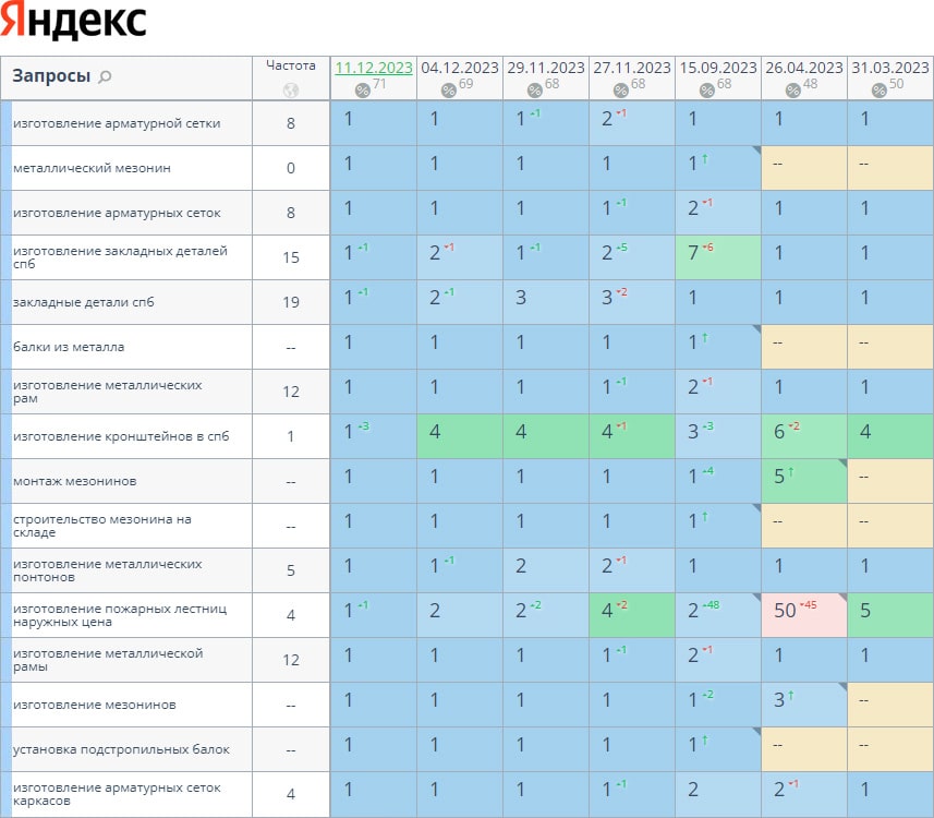 За время работы нам удалось поднять позиции в Яндекс с 18% до 71% в ТОП-10 и с 5% до 44% в ТОП-3.